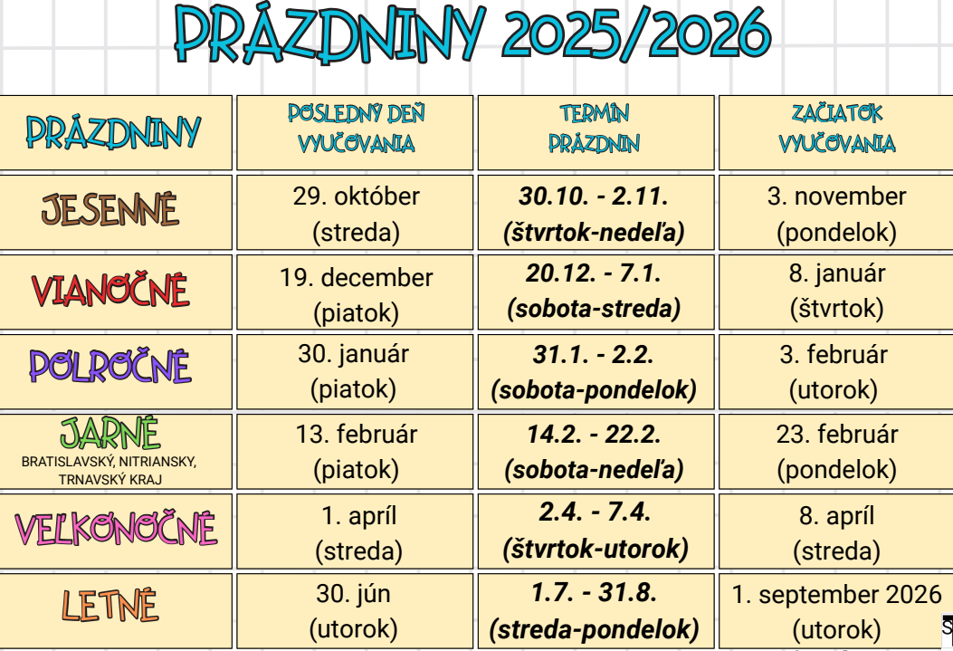 PRÁZDNINY 2025/2026
